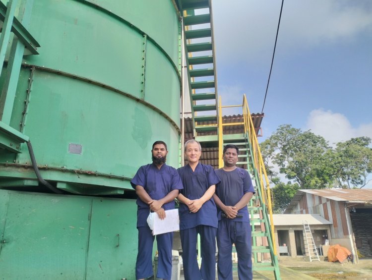 Прибыв на птицеферму заказчика в Бангладеш, инженеры сразу же вошли в зону эксплуатации компостного резервуара и провели личное общение с техническим и эксплуатационным персоналом заказчика.